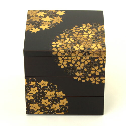 • 5寸 三段 重箱 花丸春秋(溜) 【 運動会 大型 弁当箱 おしゃれ 3段 お重箱 かわいい おせち 正月 花見 】