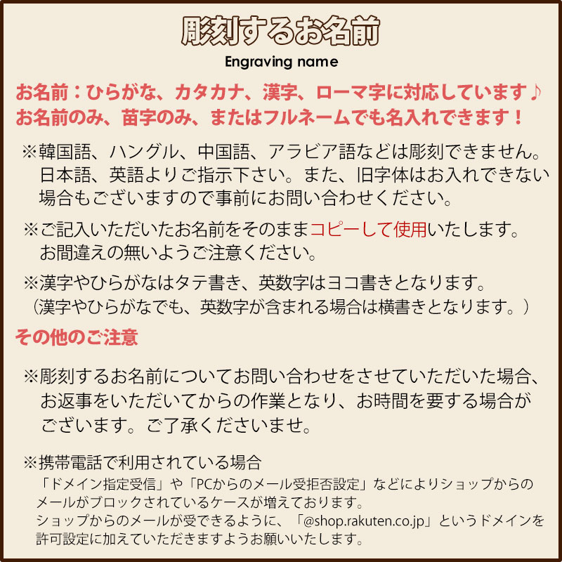 ※ご記入いただいたお名前をそのままコピーして名入れを行います。記入間違いにご注意ください。