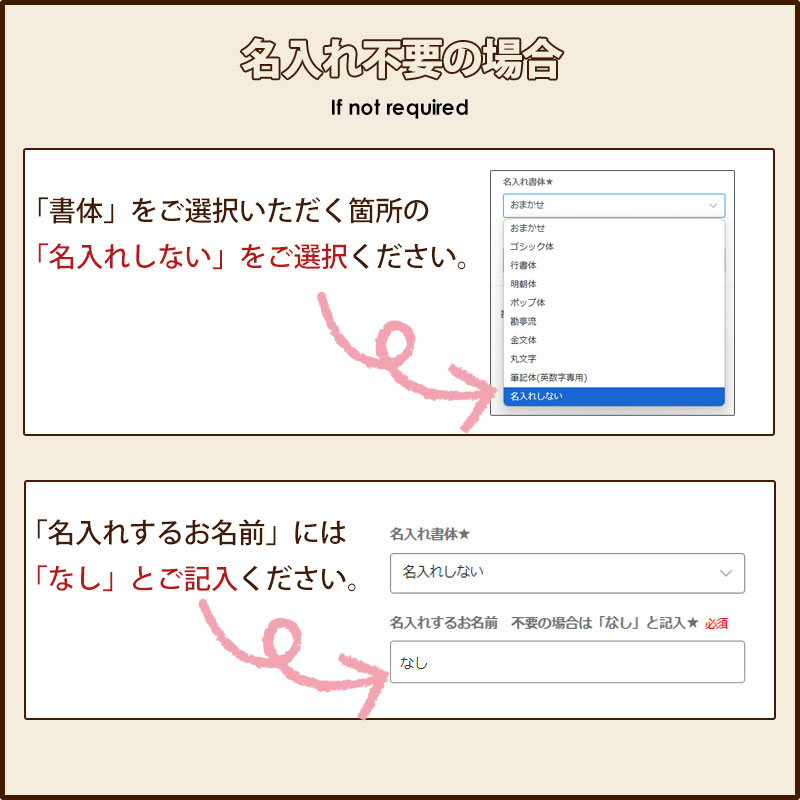 まとまったご購入の場合、名入れするお名前のご連絡は別途メールやお問い合わせフォームからも承ります。