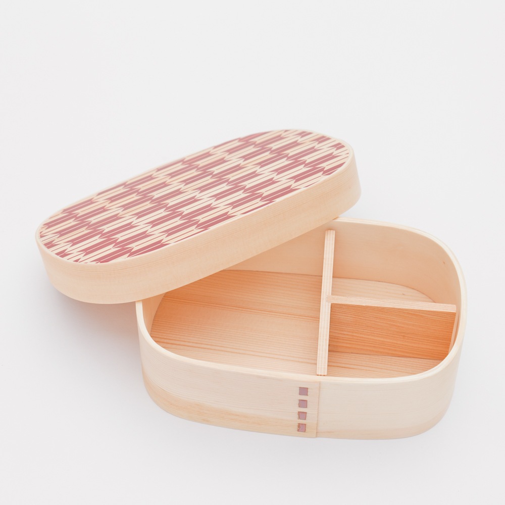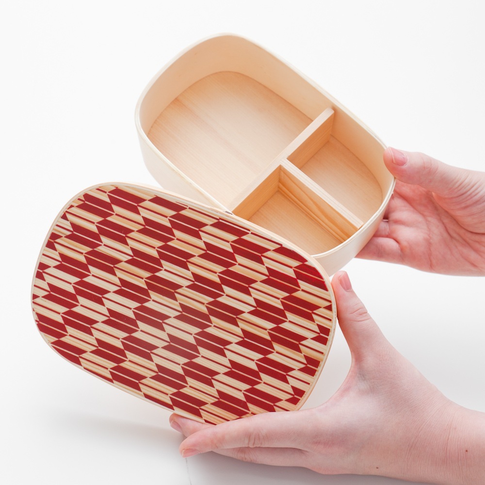 日本らしい絵柄を曲げわっぱに表現しました。昨今、日本のBENTO文化が世界で注目されていますので、海外の方への贈り物にも最適です。