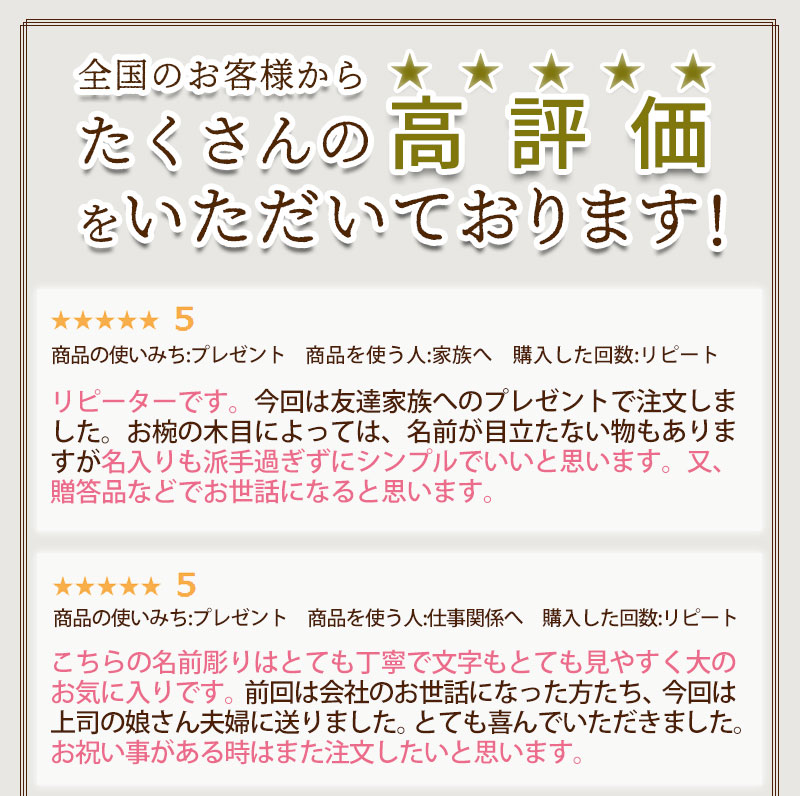汁椀にそれぞれお名前を彫刻いたします。