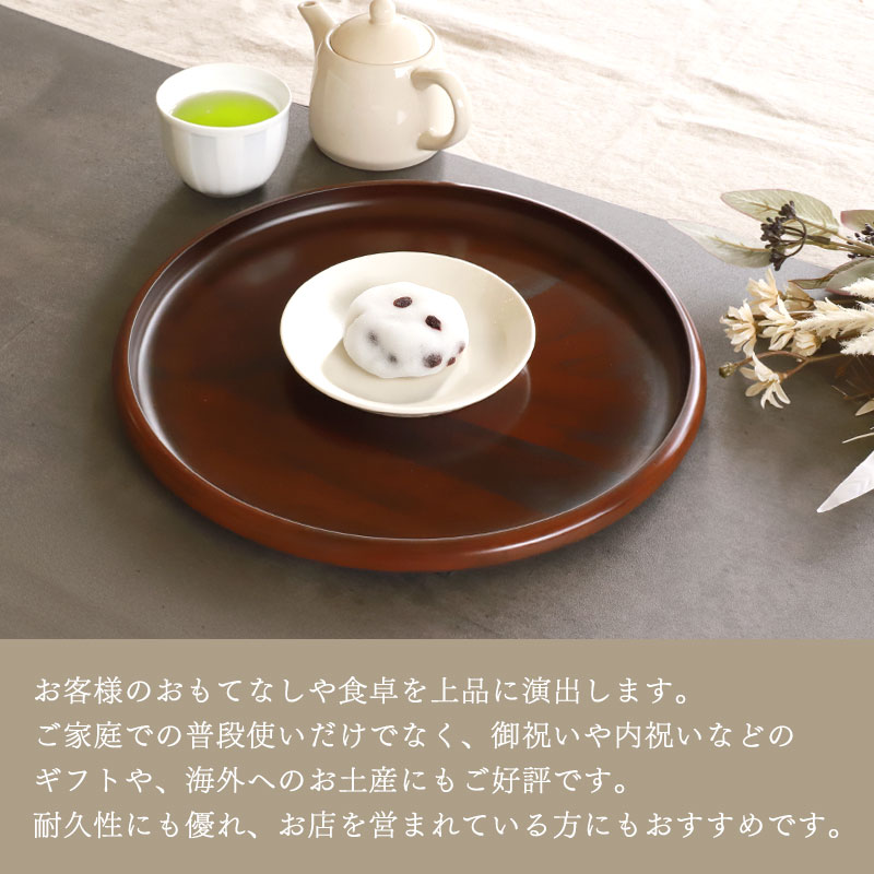 • お盆 紀州塗り 信貴 丸盆 ノンスリップ 黒丹杢調 33cm すべり止め 滑り止め 来客用 おもてなし 普段使い 日本製 おしゃれ モダン 滑らない 紀州漆器 国産 おぼん トレイ 和カフェ風 木目調 お祝い 円形 配膳