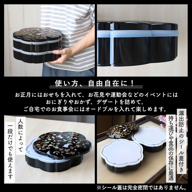 重箱 2段 7.5寸 23cm 黒 お重 日本製 山中塗 山中塗り シール蓋付き 桜オードブル 花の小路 三人用 四人用 ニ段重箱 おせち おせち料理 お重箱 おしゃれ お節 お正月 運動会 お花見 行楽 シンプル 内朱 ニ段 3人 4人 家族 漆器 うさぎ ウサギ 兎 ラビット 花柄 花 フラワー 果実 オードブル 送料無料 黒色 ブラック 朱色 レッド 金色 ゴールド シールフタ 蓋 フタ 蓋付き フタ付き 保存容器 かわいい ランチボックス アウトドア キャンプ ピクニック おもてなし パーティー 和食 洋食 和洋折衷 伝統工芸 結婚祝い お祝い 御祝 内祝 内祝い 父の日 母の日 敬老の日 お祝い返し ウェディングギフト ブライダルギフト バレンタインデー ホワイトデー 贈り物 引き出物 引出物 結婚 出産 命名 ギフト セット 詰め合わせ 贈答品 記念日 販促物 ノベルティ 誕生日 クリスマス 新学期 新生活 記念品 卒業記念品 お返し お礼 御礼 ごあいさつ ご挨拶 御挨拶 プレゼント お見舞い お餞別 引越しご挨拶 入園 入学祝い 卒園祝い 卒業祝い 就職祝い 新築祝い 引越し祝い 快気祝い 開店祝い 二次会 披露宴 結婚式 出産祝い 初節句 七五三 成人式 昇進祝い 新築 上棟 引っ越し 開店 退職 快気 全快祝い 初老 還暦 古稀 喜寿 傘寿 米寿 卒寿 白寿 長寿 金婚式 銀婚式 ダイヤモンド婚式 結婚記念日 木婚式 定年 景品 賞品 粗品 法事 忌明け 四十九日 初盆 お中元 御中元 お歳暮 御歳暮 お年賀 御年賀年始挨拶 のし メッセージカード ラッピング キッチン雑貨 食器 みよし漆器本舗 みよし漆器 三好漆器 ポイント消化